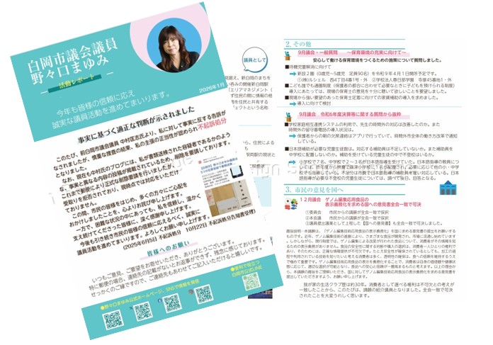 【野々口まゆみの市政レポート】を発行しました。